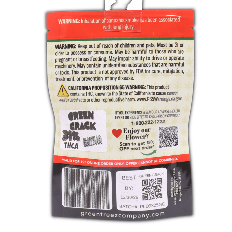 Hemp Flower products look and smell like marijuana. Treat raw hemp flower like cannabis. Please observe your local laws while consuming it. Green Treez Company is not responsible for anyone confiscating this product, arresting, or fining our customers because of an unfortunate misunderstanding. Please use your discretion and keep the original packaging as added support that it is legal hemp.