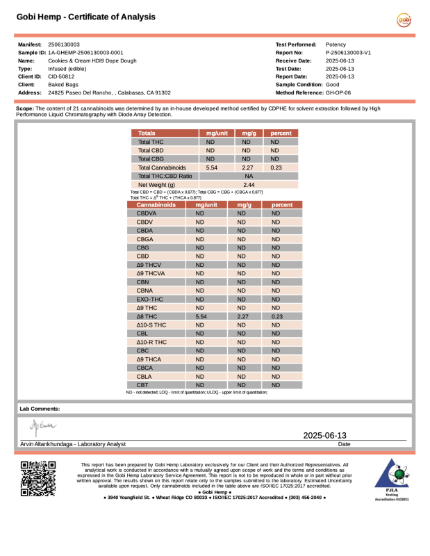 Baked Bags have formulated delicious, gourmet cookie dough edibles and infused them with hemp derived Delta 9 THC. These amazing treats have a legitimate taste of candy dessert with barely any hemp flavor. The effects are extremely fast acting with heady, fun effects.
