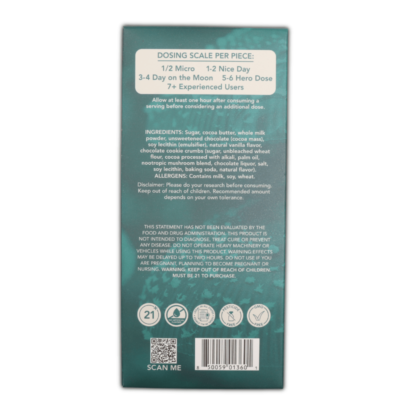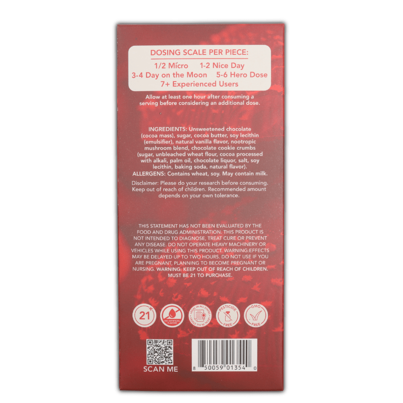 The flavors of these chocolate mushroom bars are straight up sinful. You will enjoy the taste of this chocolate even better than an undosed dessert. This being said, it is very important you start with 1 square or even half of 1 square to establish your tolerance. Do not take more servings until several (4+) hours have passed.