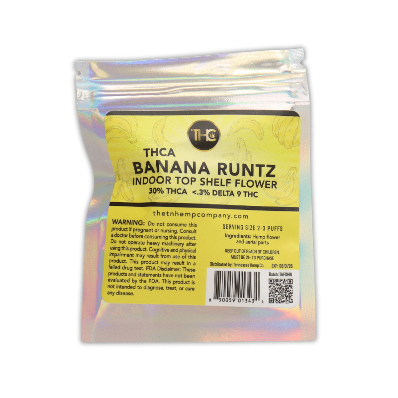 Banana Runtz-Β is a visually appealing hybrid strain featuring dense, bright green buds with hints of purple and a heavy dusting of sugary trichomes. Its aroma is sweet and tropical, combining the creamy scent of ripe bananas with candy-like undertones that give it a dessert-style appeal. The flavor follows closelyβsmooth, fruity, and slightly creamy with a lingering sweetness on the exhale. Consumers describe the effects as balanced and relaxing, offering an initial wave of euphoria and mental uplift that gradually transitions into a calm, soothing body high. Banana Runtz is best enjoyed in the late afternoon or evening when you want to unwind, boost your mood, and savor its smooth, fruit-forward flavor.
