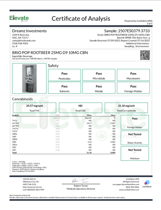 Brio's THC Infused Soda Pops make the perfect pair of flavor and effects in a bottle. With a balanced, mellow euphoria and delicious soda taste, you cannot go wrong. This particular formulation includes CBN, designed for enhanced relaxation.