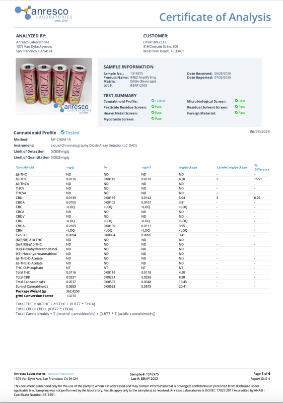 1 Can contains 5mg of Delta 9 THC 5mg CBD
