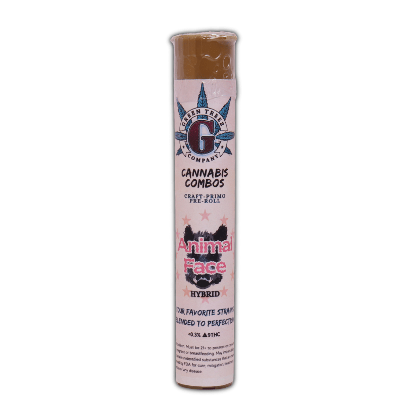 Animal Face is a potent, flavorful hybrid strain with dense, resin-coated buds showcasing deep green tones and amber-orange pistils. Its aroma is bold and complex, blending sharp notes of diesel, nutty earth, and sweet cookie dough for a rich, savory-sweet profile. The flavor is equally distinctiveβgassy and piney on the inhale with hints of sweet vanilla and spice on the exhale. Consumers describe the effects as powerful and uplifting, delivering an immediate cerebral buzz that sharpens focus and creativity before settling into a relaxing, body-soothing calm. Animal Face is best enjoyed in the late afternoon or evening when you want a strong, flavorful experience that balances mental clarity with deep physical relaxation.
