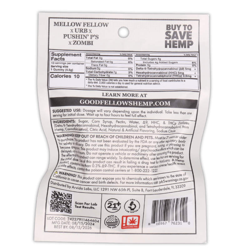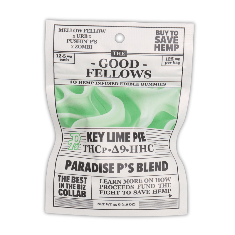 Goodfellows is the name of a collaboration from Florida based brands including Mellow Fellow, Urban, Zombi, and Pushin' P's. The Paradise P's Blend Gummies are designed for an invigorating, elevated effect.